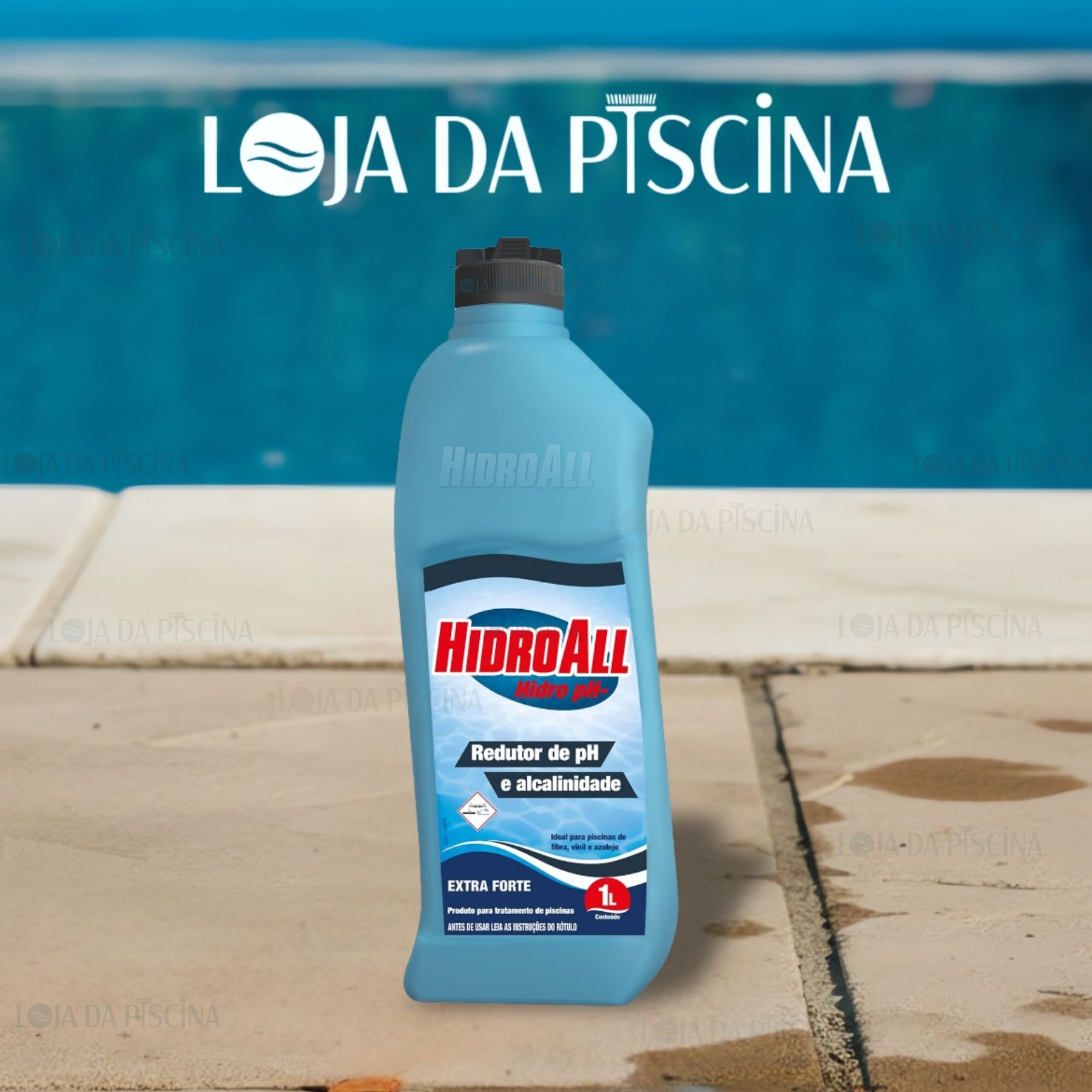Hidro pH- Extra Forte reduz o pH e a alcalinidade, clarifica a água e elimina a turbidez (água leitosa) provocada pelo carbonato de cálcio que é formado sempre que o pH da água da piscina ultrapassa 7,9.